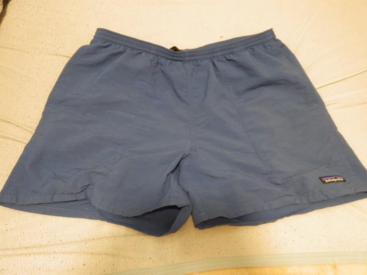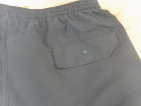 最新のバギーズショーツは、ショーツの生地表面に耐久撥水の加工がされているようですが、私のは、5年以上前のモデルなのでその加工はされていない模様です。
