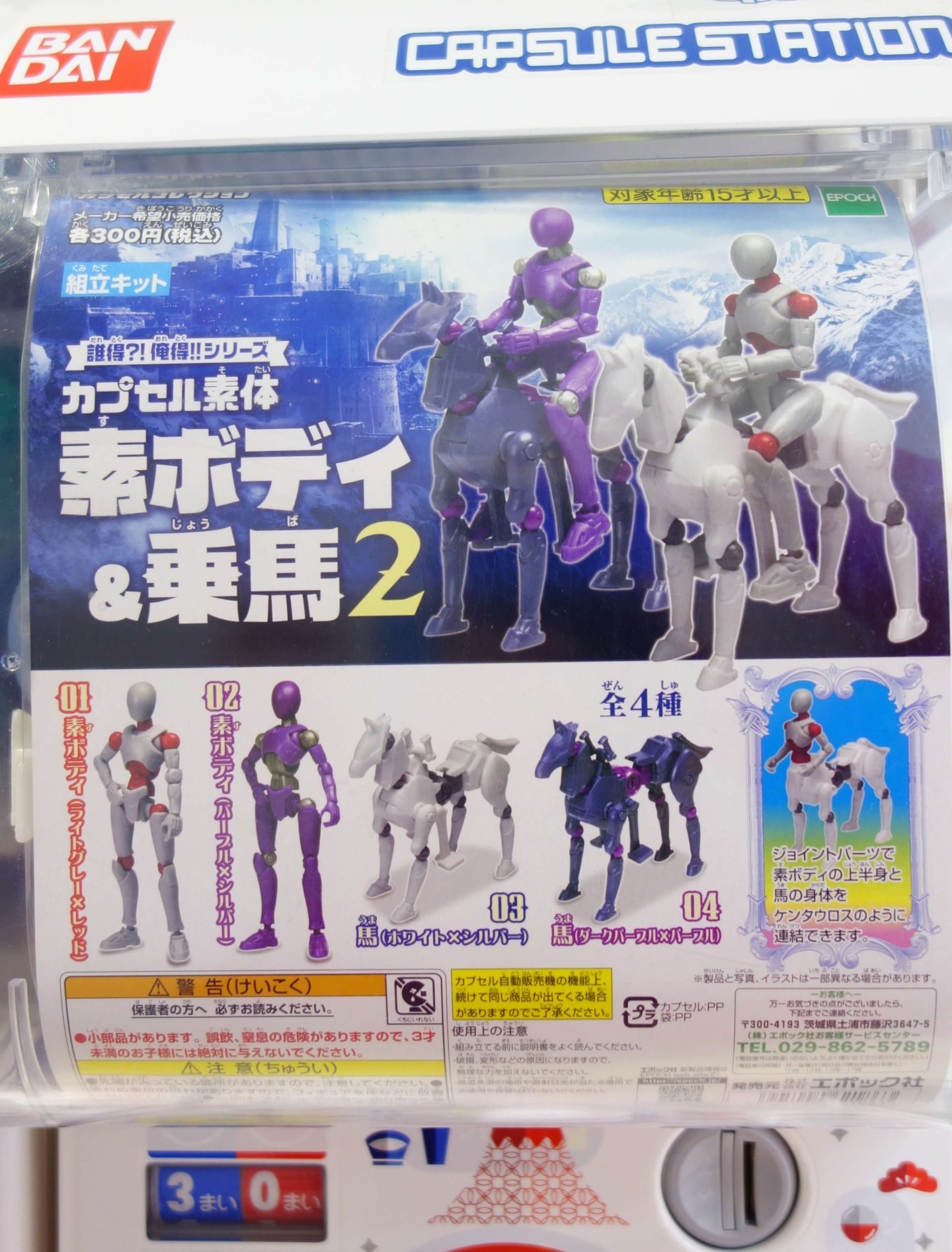 狙いは馬です。純白の馬。当たったのは、素ボディ(ライトグレー×レッド)、馬(ホワイト×シルバー)×2、馬(ダークパープル×パープル)の計4つです。全種類当てようと粘ってみたのですが、諦めました。