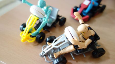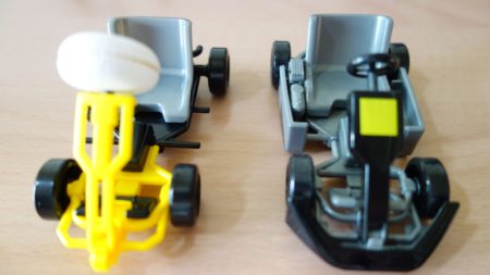 カートの方はあくまで衝突実験カートですので、後ろの赤いカートよりかは簡素にデザインされています。赤い方のカートは、素ボディのカートです。