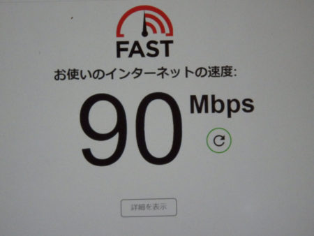 混雑時の夜に速度を計測してみたのですが、無線LAN接続で90Mbps出ていました。