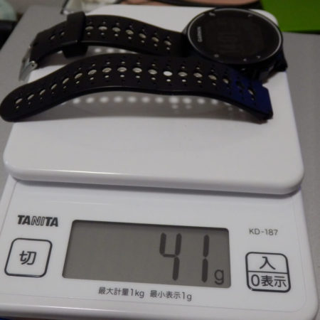 はかりを購入したので、ここぞとばかりに重さを測りたいと思います。純正は41g。この時計はおもちゃのように軽いので気に入っています。
