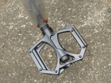 6年間使ってきたノーマルのペダルです。多分ペダルのベアリングが錆びているのでしょう。漕ぎ出すとギィギィいうてしまいます。ベアリングの掃除すればいいのですが、交換することにしました。