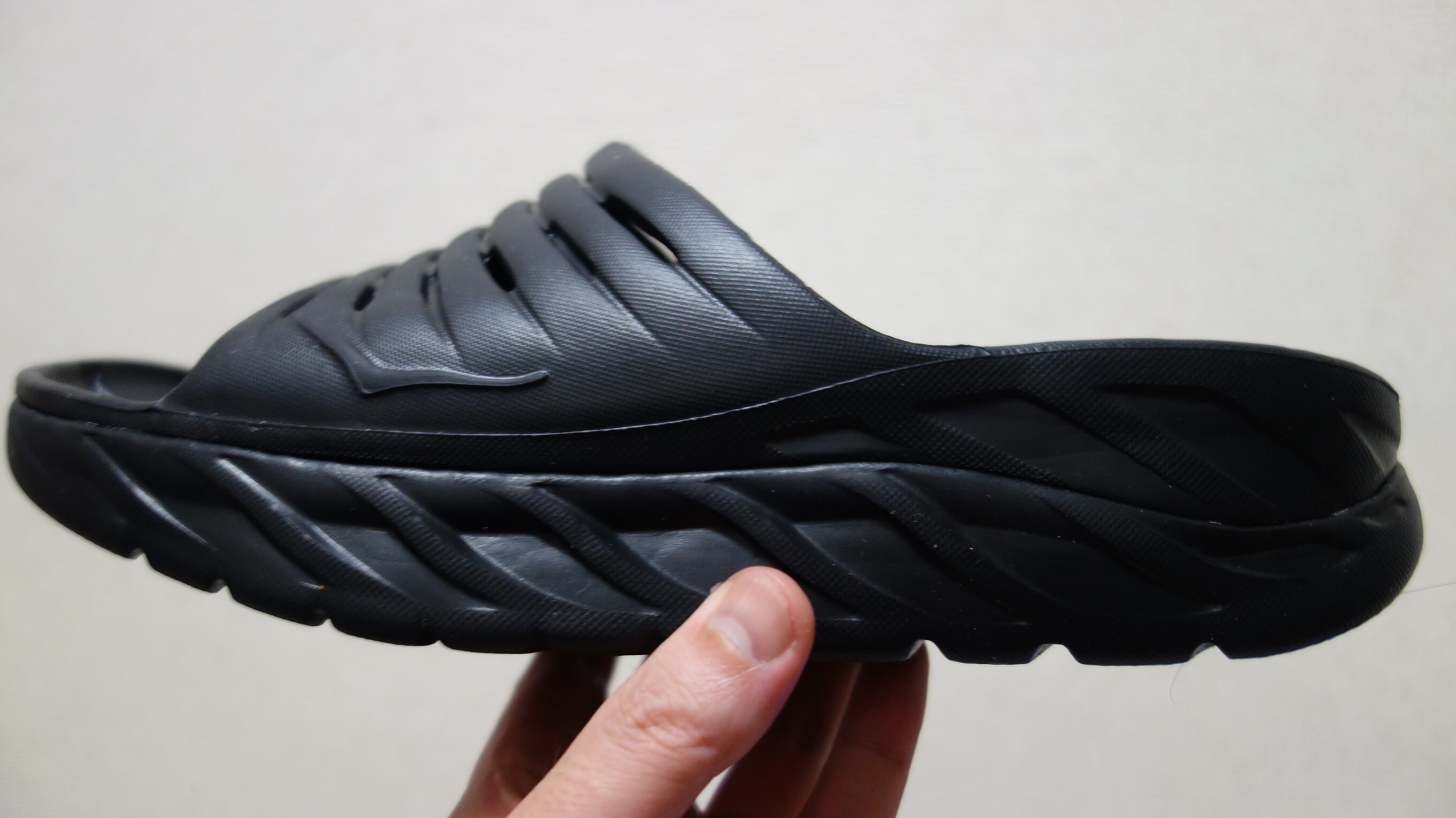 ホカオネオネのORA RECOVERY SLIDE(オラ リカバリー スライド)は、リカバリーと謳うだけあって足裏、特に土踏まずを押してマッサージできるサンダルなのかなぁと思っていたのですが、そんなこともなく、メタロッカー機能のある普通のサンダルのような感じです。