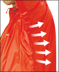 ・脇部分に換気効率に優れた換気口を備えており、衣服内の蒸れを素早く放出(ベンチレーション機能)
