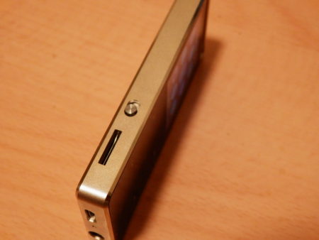 ・左側面は、マイクロSDカード挿入口、HOLDのボタン