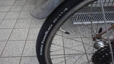 プルミーノは小径車なので、普通の自転車よりもタイヤの摩耗が早いと思います。ほぼ毎日自転車を使用して2年というのは、持った方なのか分かりません。が、とにかく交換です。