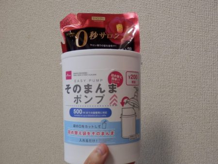 詰め替え用のパッケージを開けて、ポンプ部分を差し込んで終了です。