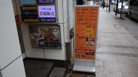 入り口には、てんぷら阿部の看板がありますのでわかりやすいと思います。