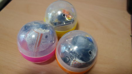 ガチャの中身をのぞいてみたら、残り5つしかなかったので全部やろうと思ったんですが、600円しかお金がなかったので3つ回してきました。で当たったのは、軍用レーダーカー・ポリスカー・ミニショベルカーが当たりました。